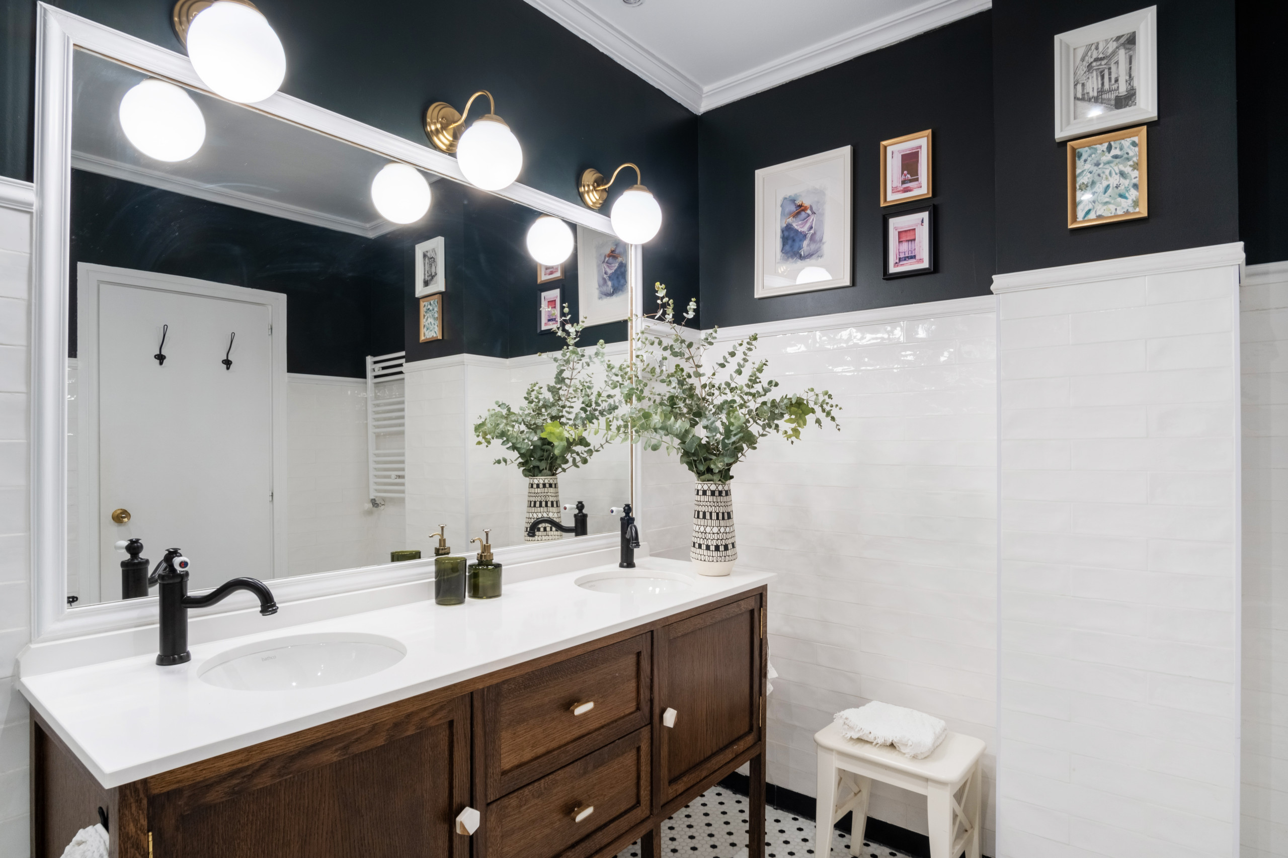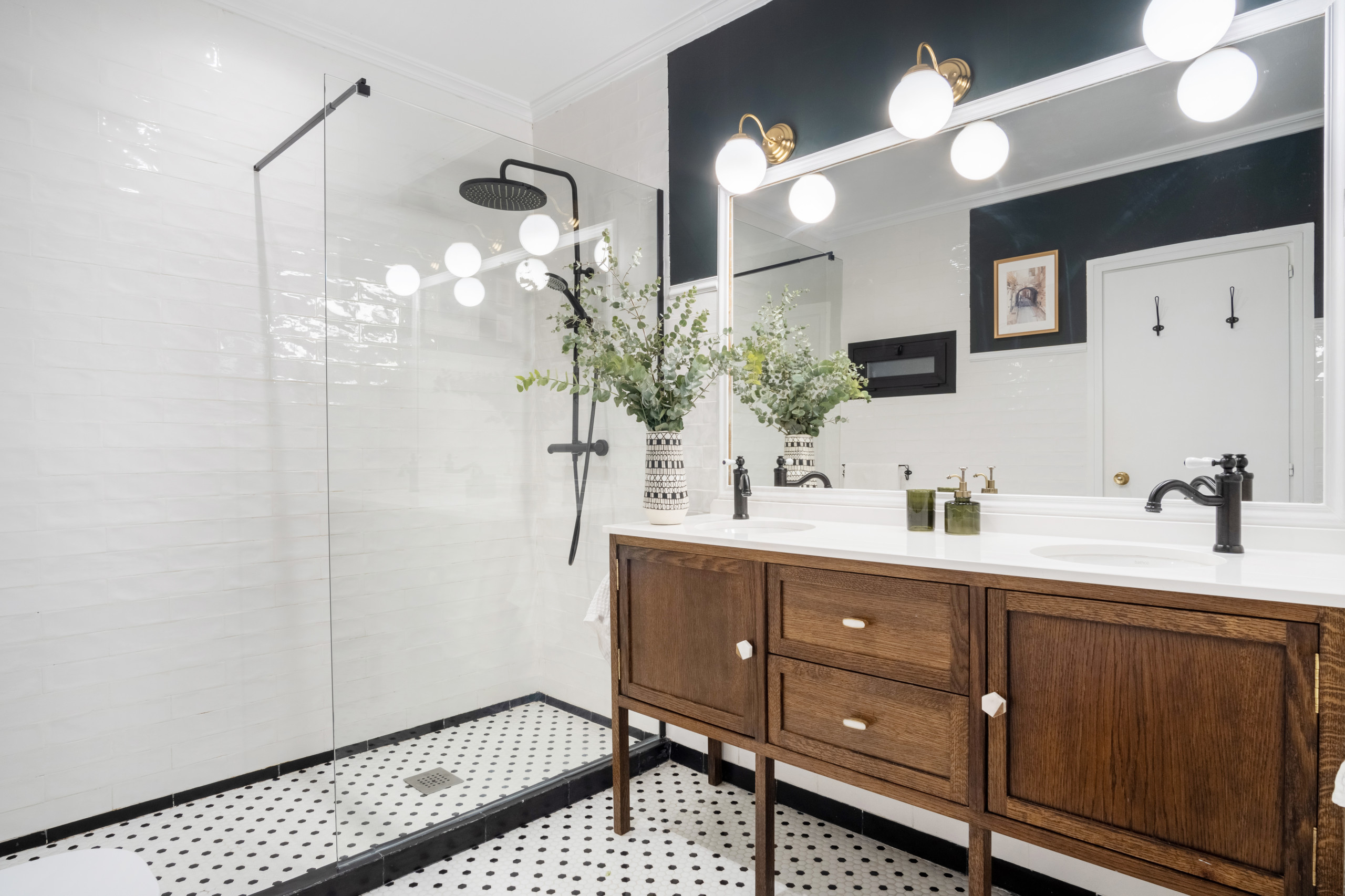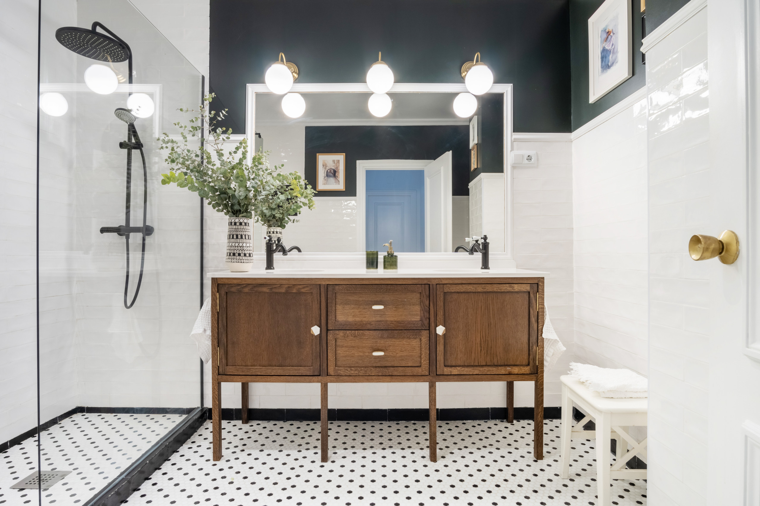 Buscábamos darle un aire elegante pero acogedor, que fuese apetecible, que tuviese en cierta medida poco aspecto de baño y más de otra habitación más. El mueble de baño se hizo a medida por un ebanista, y es la clave del proyecto.